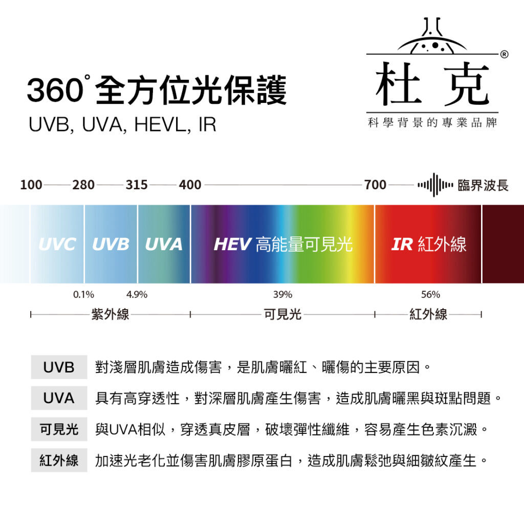 減緩因紫外線UVA/UVB、藍光可見光與IR紅外線